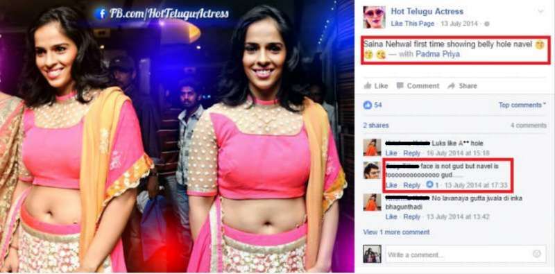 One of the comments on a picture of badminton ace Saina Nehwal in traditional attire read: “face is not gud but navel is toooooooooo gud…..”