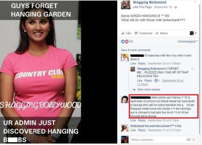 Other comments like, “c*m on her glasses” and “Sania Mirza perfect b**ch” were all over the internet.
