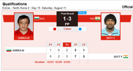 Both wrestlers were cautious and measured each other in round 1. It went to the clinch and the Bulgarian won the toss. He made full use of his advantage and lifted the Indian and threw him down to the mat to record the takedown and win the round. 1-0 to Guidea.