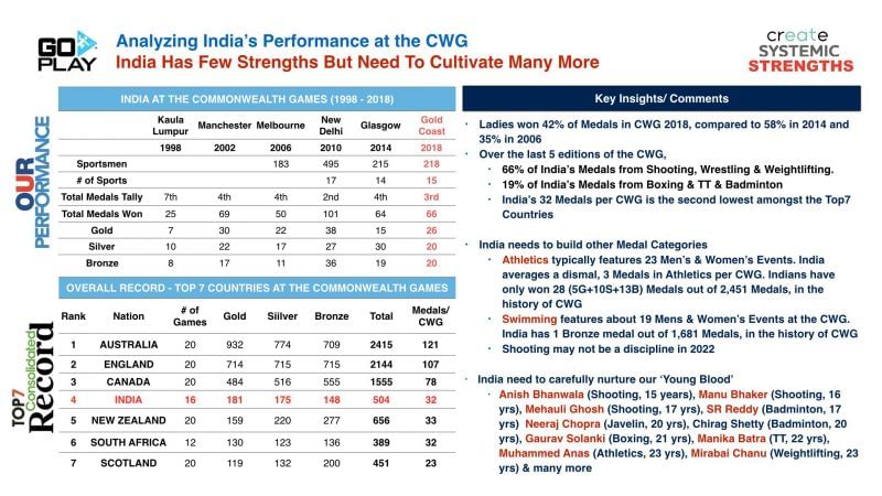 With 66 medals at CWG2018, Indian athletes have delivered encouraging results. Upon some analysis, six key insights are worthy of mention:
