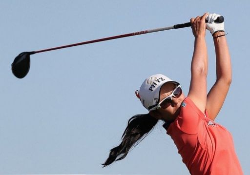 Ai Miyazato of Japan hits a tee shot on the 18th hole during the RR Donnelley LPGA Founders Cup March 16, 2013 in Phoenix, Arizona. Miyazato fired a five-under par 67 and was aided by a penalty on American Stacy Lewis on her way to seizing a four-stroke lead after the third round.