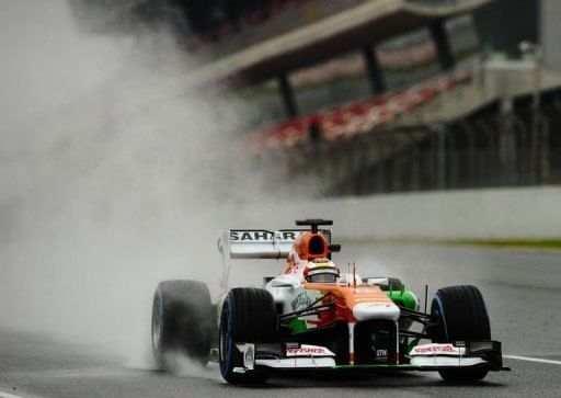 Lotus’ French driver Romain Grosjean during F1 testing at the Catalunya circuit in Montmelo, near Barcelona, on March 1, 2013. Grosjean set the fastest time in Formula One testing at the Catalunya circuit on Friday, making the most of dry afternoon conditions, in marked contrast to the wet surface of the morning session.