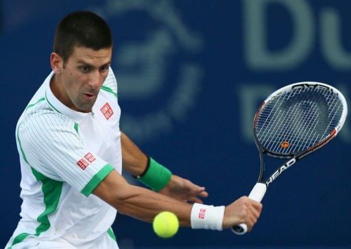 World number one Serbia’s Novak Djokovic returns the ball to Argentina’s Juan Martin Del Potro during their ATP Dubai Open tennis semi-final match in the Gulf emirate on March 1, 2013. Djokovic won 6-3, 7-6 (7-4).