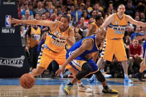 Veteran guard Andre Miller scored the game-winning layup with 1.2 seconds left to lift the Denver Nuggets to a 97-95 win over Golden State in game one of their opening round NBA playoff series.