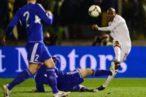 Ashley Young kicks the ball in the World Cup qualifier match of England against San Marino . England beat them 8-0 as Alex Oxlade-Chamberlain, Ashley Young, Frank Lampard, Wayne Rooney and Daniel Sturridge scored a goal each with Jermain Defoe scoring twice.