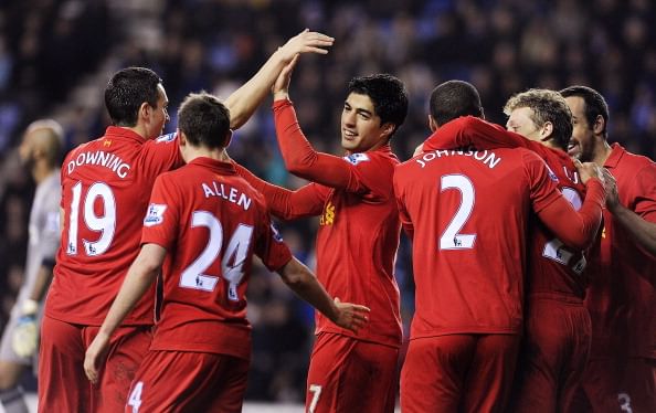 5. Luis Suarez helps Liverpool with a spectacular hat-trick over Wigan Athletic