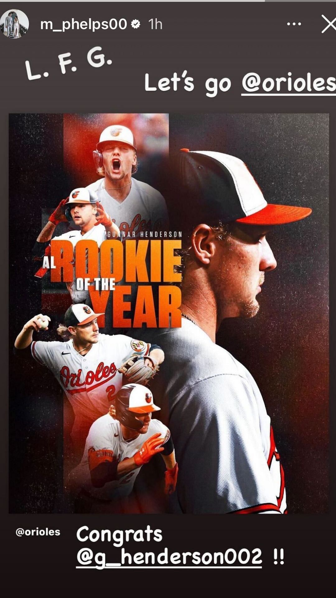 Celebrating his and the Baltimore Orioles’s massive achievement, Michael Phelps shared an Instagram story. It was a ‘Rookie of the Year’ post for Henderson created by the official Instagram page of Orioles. Sharing the story, Phelps wrote: