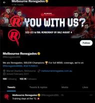 Overall, the Melbourne Renegades have 151K followers on Twitter and 163K followers on Instagram.