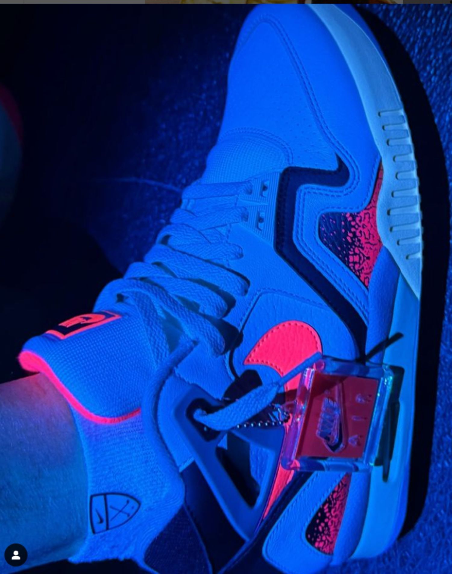 The high tech sneakers featured a polyurethane midsole and visible Nike Air sole unit in the heel.