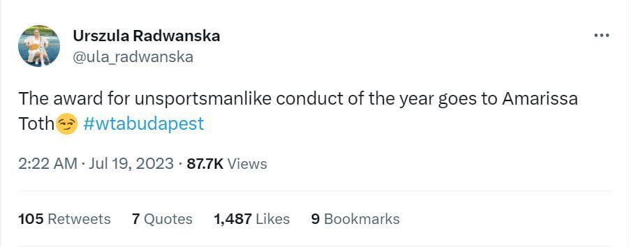 Australia's Ajla Tomljanovic condemned the behavior of Toth and applauded Zhang for keeping up her sportsmanship on her way out.