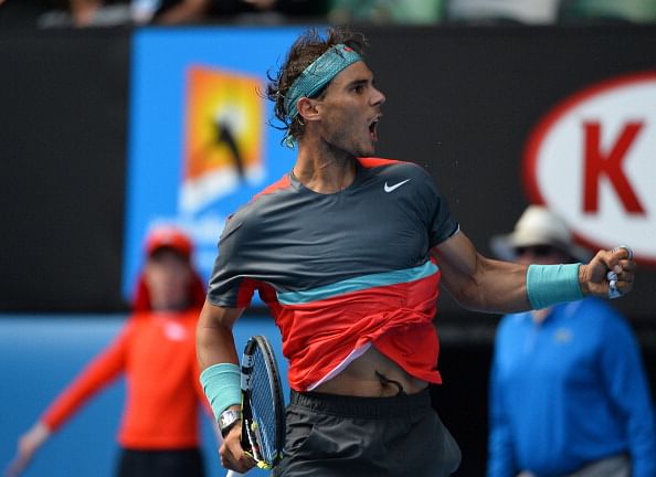 Spain’s Rafael Nadal celebrates winning a point during his men’s singles match against Japan’s Kei Nishikori on day eight of the 2014 Australian Open tennis tournament in Melbourne on January 20, 2014