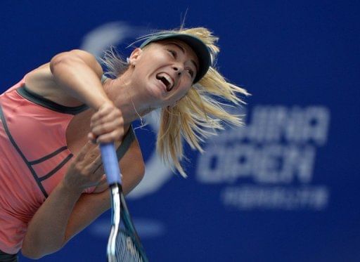 Maria Sharapova serves during her China Open third round match against Polona Hercog of Slovenia on Thursday.