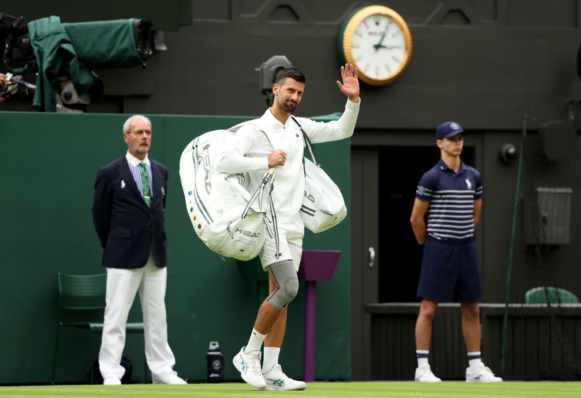 The Wimbledon has a strict all-white dress code and Djokovic's grey knee brace made his look interesting. The Serbian could be set to wear his protective gear throughout the tournament as he looks to ease his knee back to competitive action.