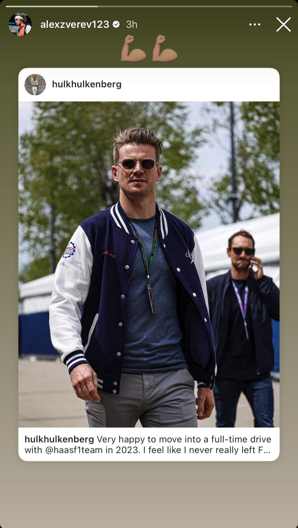 Alexander Zverev took to Instagram on Thursday to congratulate his compatriot Nico Hulkenberg on his return to full-time racing for the 2023 Formula 1 season.