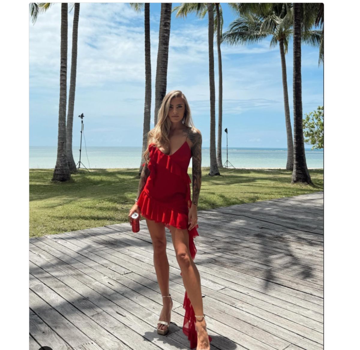 Sophia Thomalla shared an image on her Instagram stories in which she's posing on Thailand's Ko Samui beach in a stunning red dress.