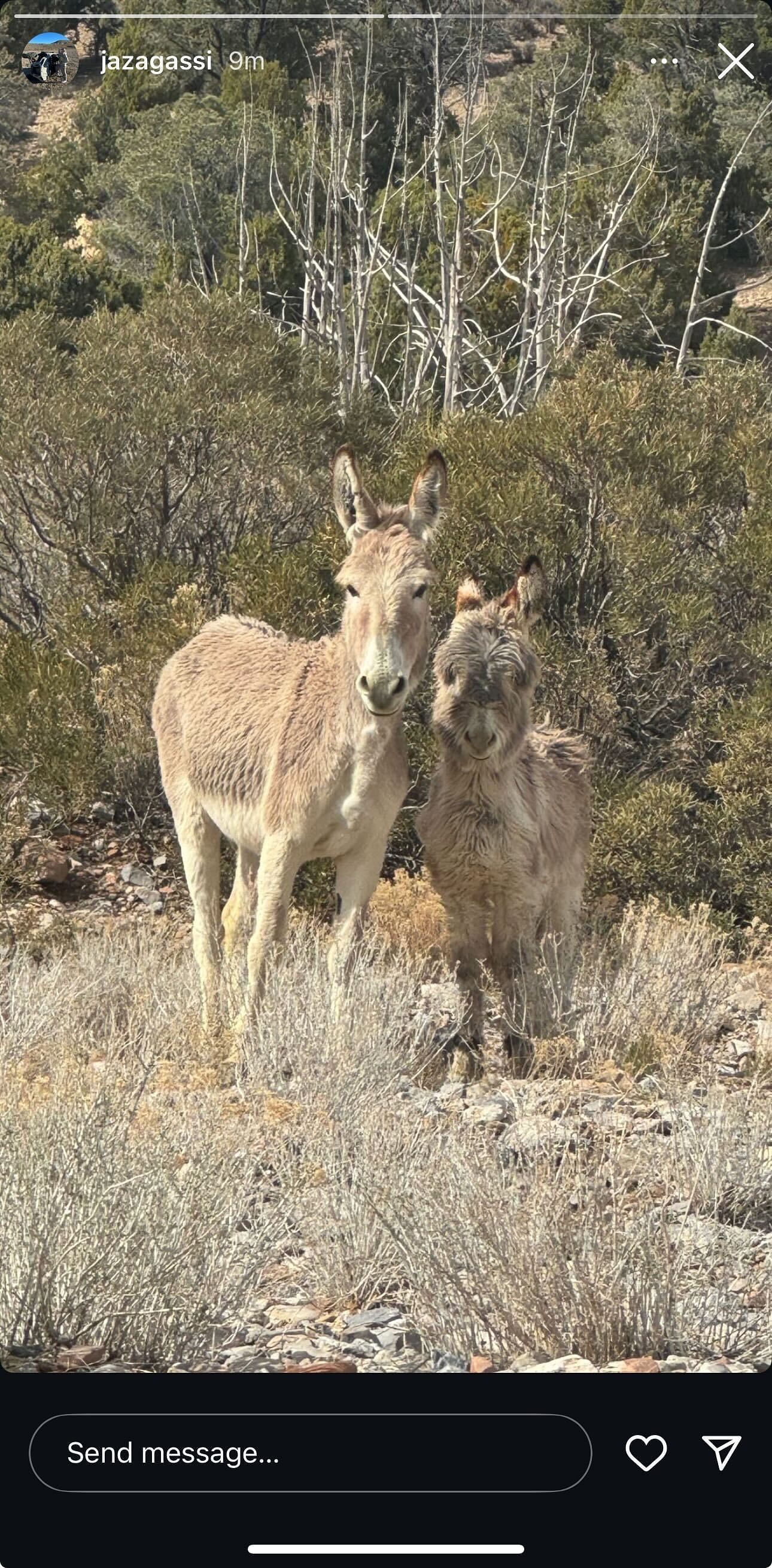 Jaz Agassi later encountered an adorable pair of donkeys and shared the pictures in her story.