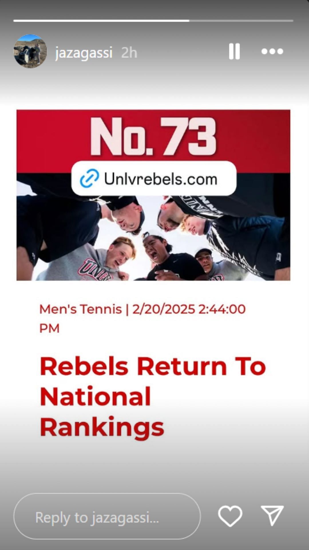 UNLV men's tennis has broken into the national rankings for the first time in 12 years, landing at No. 73 in the latest ITA Division I rankings. Under second-year head coach Andy Jackson, the Rebels have achieved a 5-3 record. The team was last ranked No. 69 in May 2013.