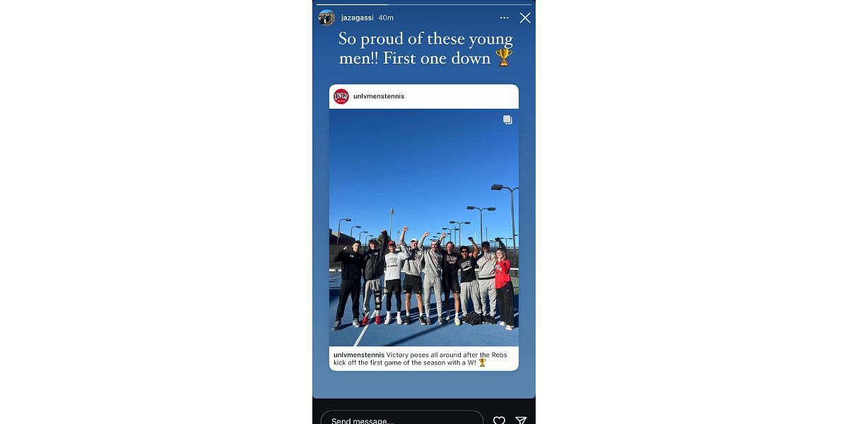 Andre Agassi and Steffi Graf's daughter Jaz has displayed her support for the University of Nevada, Las Vegas (UNLV) men's tennis team. The 21-year-old shared her excitement over the Rebels' strong start to the season with an impressive win over Creighton University.