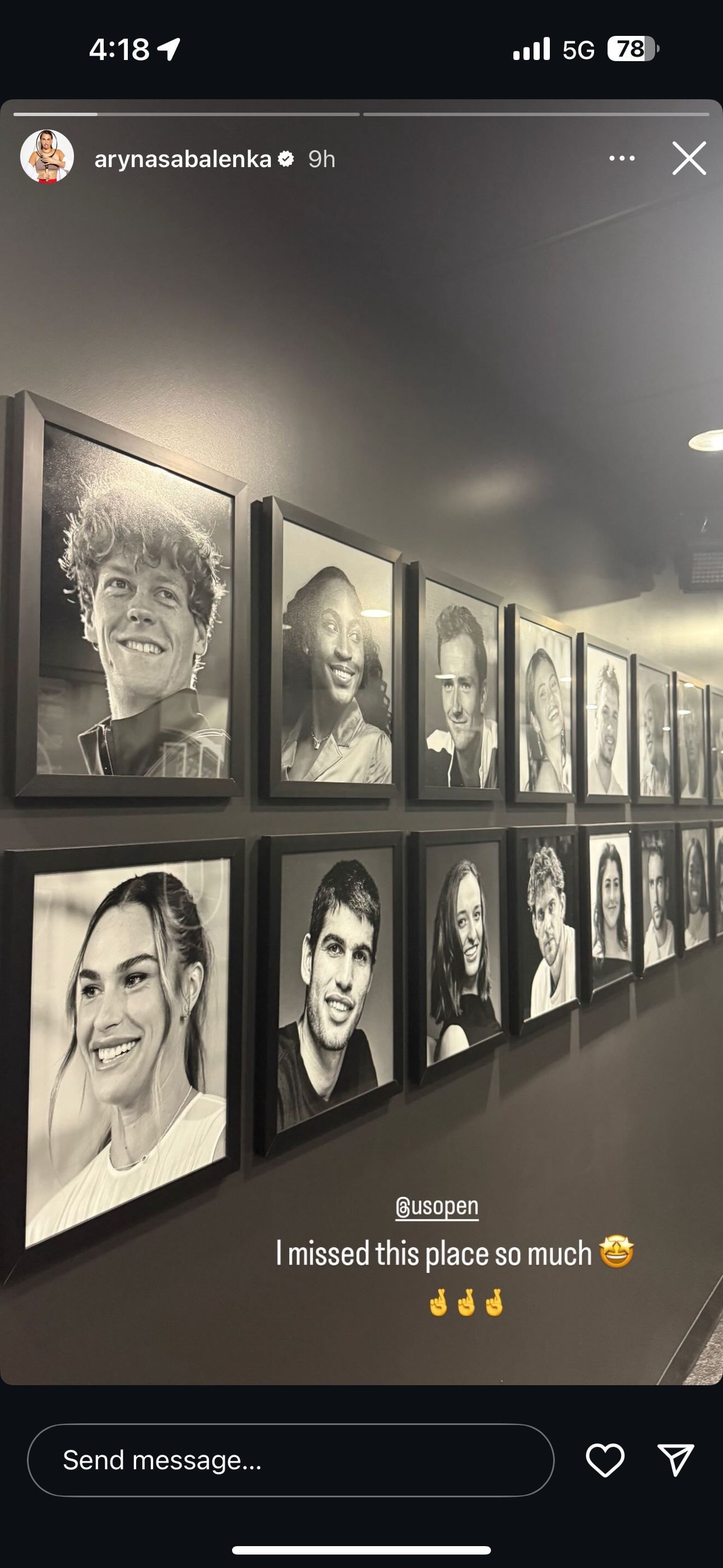 At the 2024 US Open, Sabalenka won her third Major singles title and maiden singles title at Flushing Meadows after defeating home favorite Jessica Pegula in the final. Following her arrival at the Billie Jean King National Tennis Center for this year's edition of the US Open, the reigning WTA No. 1 took to her Instagram Stories and shared a post that reflected her delight.