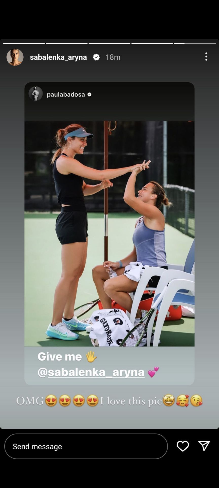 Carrying on with the camaraderie, Badosa recently posted a picture from Montreal in which she can be seen high-fiving Sabalenka. The Belarusian reposted the image on her Instagram and wrote: