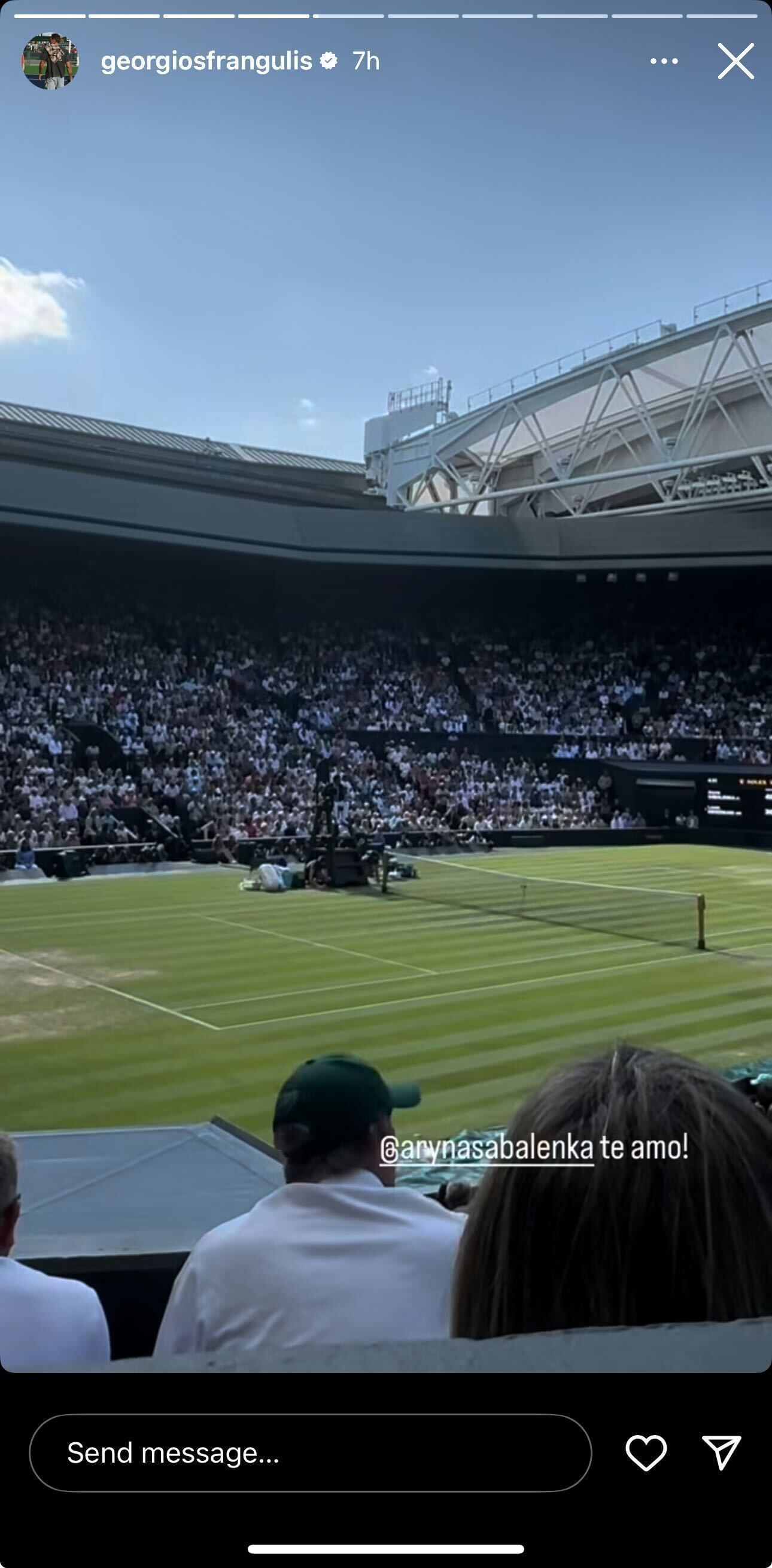 After the Belarusian's gritty win, Frangulis shared the image of the grasscourt while expressing her love for Sabalenka.