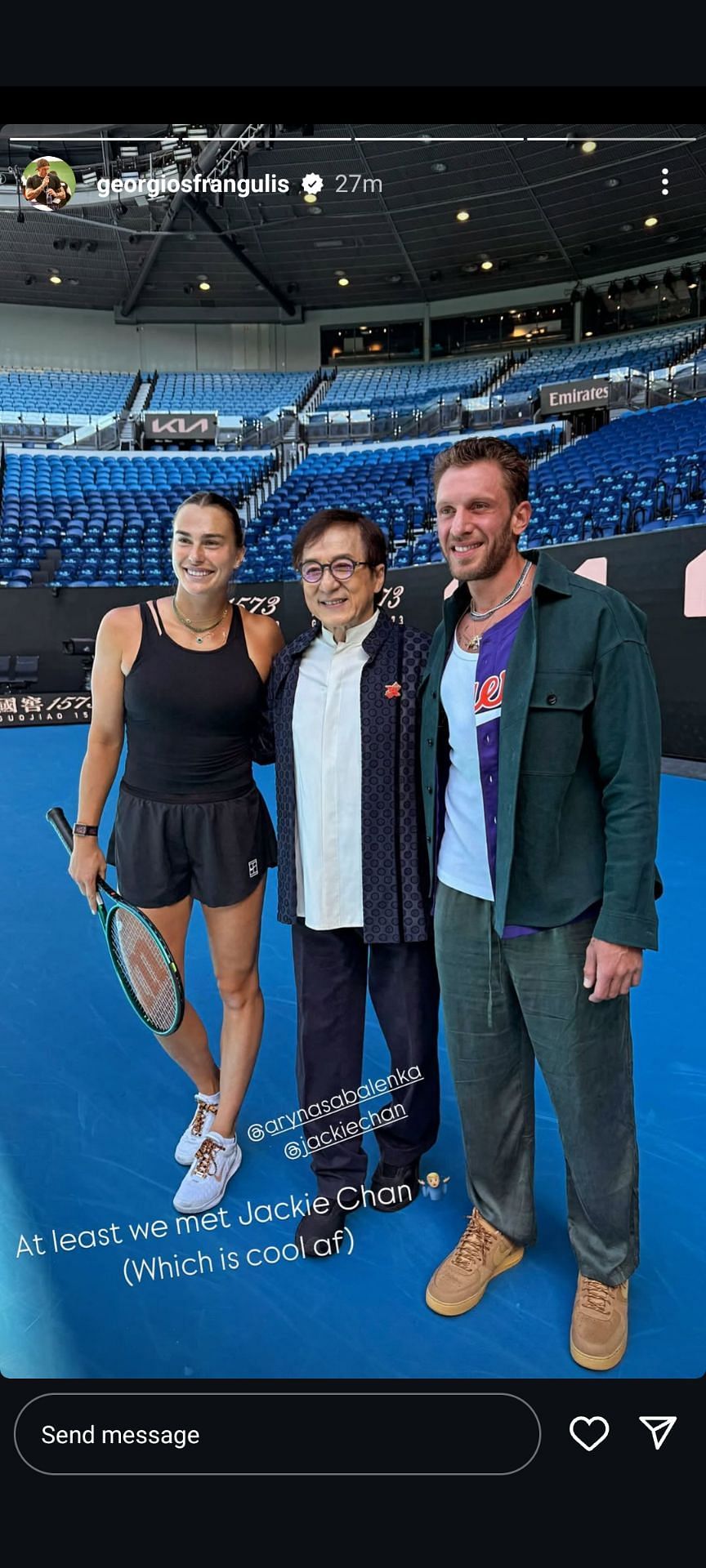 Aryna Sabalenka's boyfriend, Georgios Frangulis, reacted to their meeting with a Hollywood icon at the Australian Open final. Following the Belarusian top seed's loss to Madison Keys, Frangulis made his feelings known by sharing the moment he and Sabalenka had with Jackie Chan before the final.