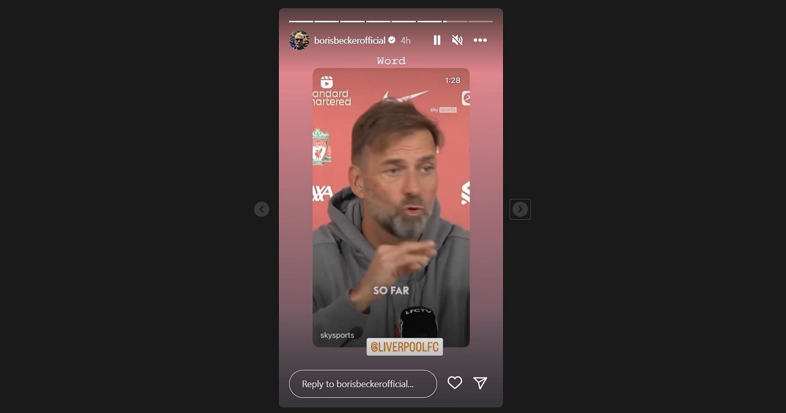 Becker shared the clip on his Instagram stories along with a caption reading "Word," suggesting that he agreed with Klopp's sentiment. The former World No. 1 also tagged Liverpool FC in the post, indicating his support for the team and its manager.