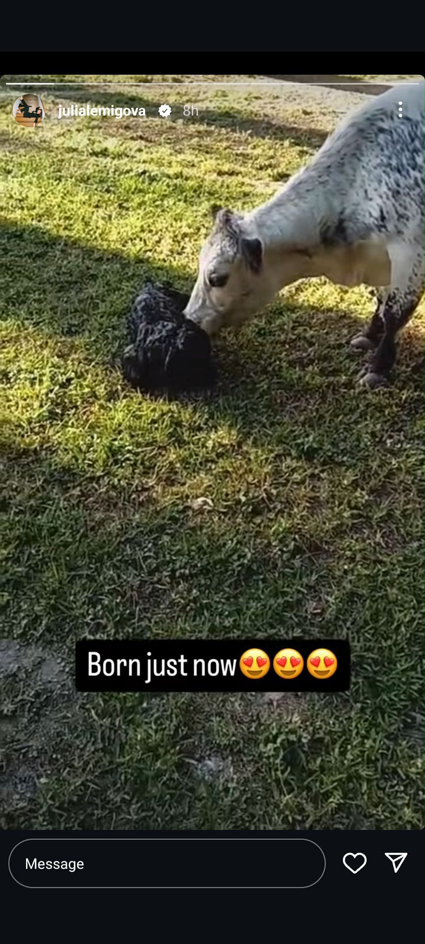 Taking to her Instagram Story on Friday, December 6, Lemigova, a star in the reality TV show The Real Housewives of Miami, posted a video of an adorable newborn cow. It was being nursed by what appeared to be her mother. Lemigova captioned the Story: