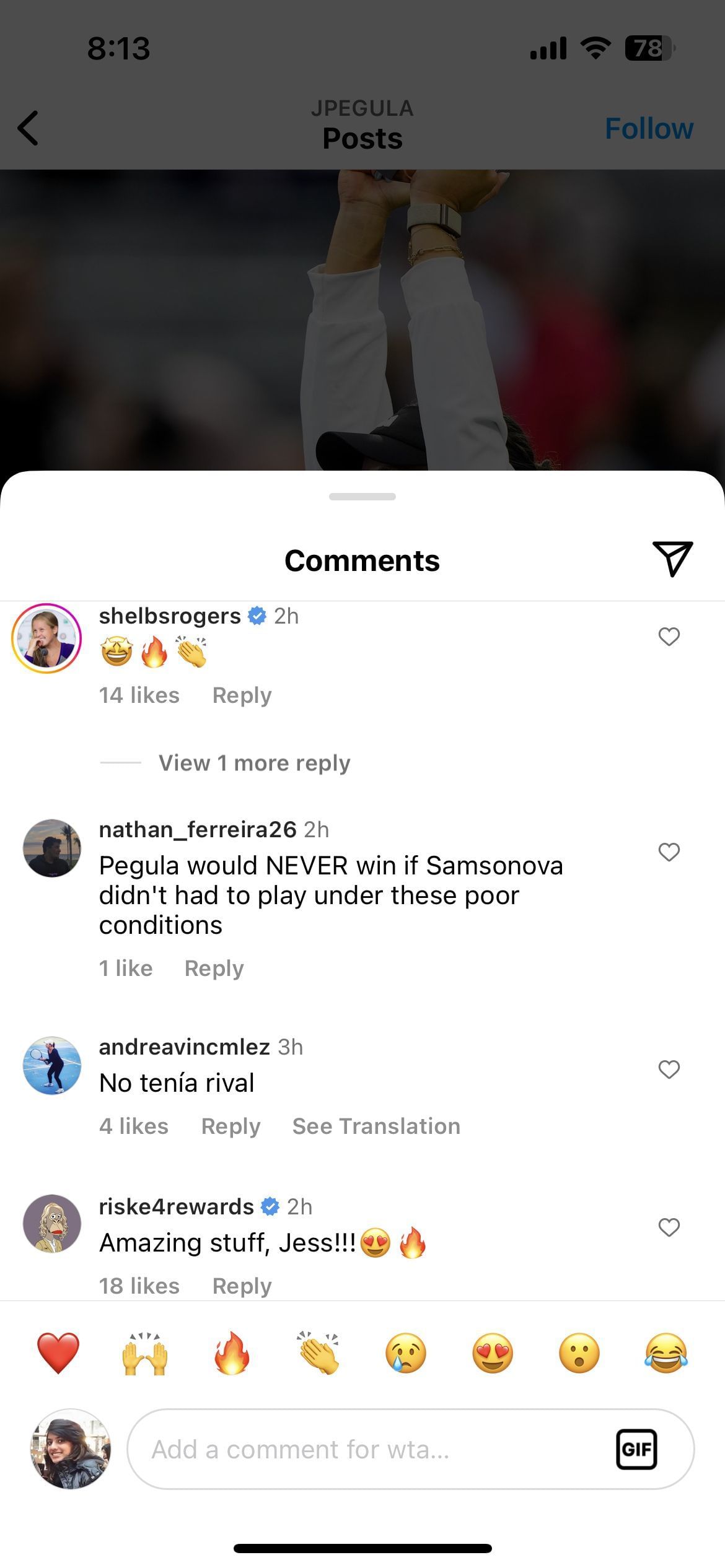 "@jpegula ayeeee," Gauff posted on her Instagram story with celebratory emojis.