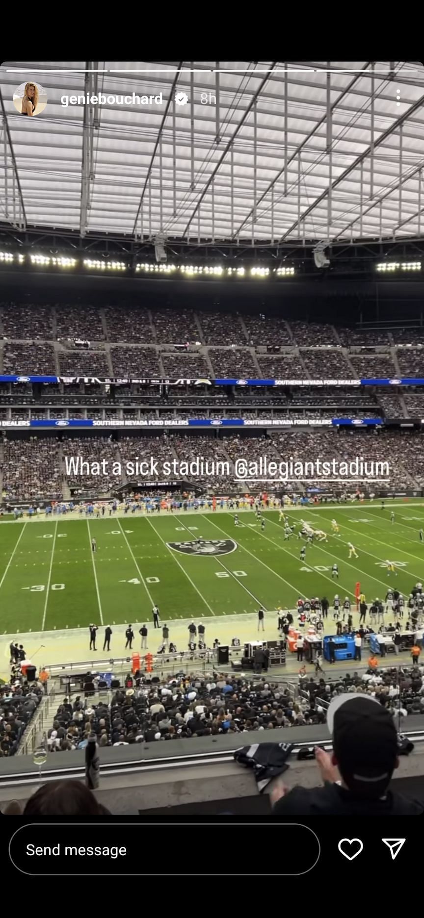 The former World No. 5, who cheered for the Raiders, posted a clip of the impressive Allegiant Stadium on her Instagram stories, writing: