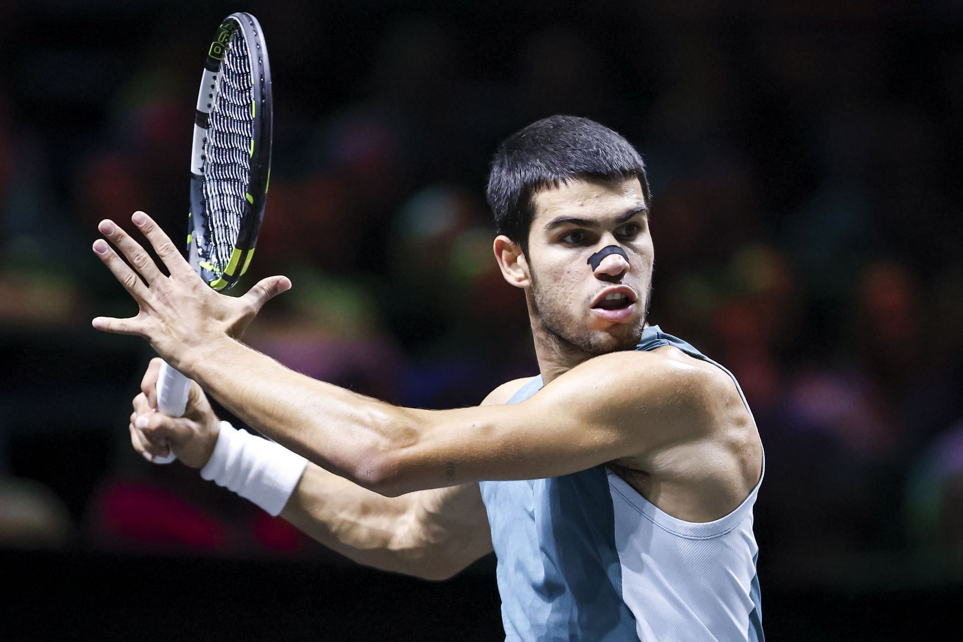 Carlos Alcaraz got rid of his nasal strip during his on-court practice ahead of his second match at the 2025 ABN AMRO Open. The Spaniard was dealing with a prolonged cold before starting his campaign.