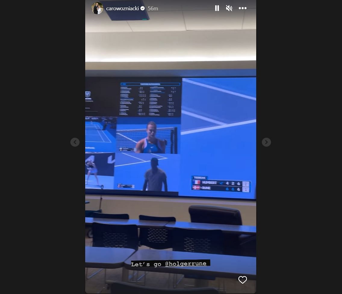 "Let's go, Holger Rune," Wozniacki wrote on her Instagram Stories, along with a short clip of her Australian Open viewing station.