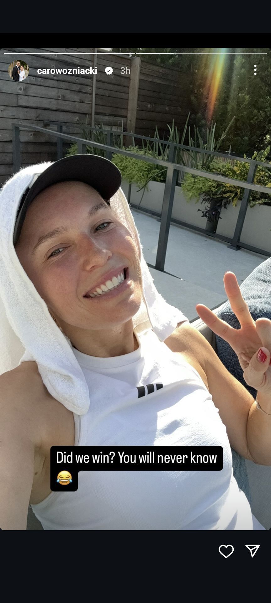 In the next Story, the Dane uploaded a post-game image of her cooling down with a caption that read: