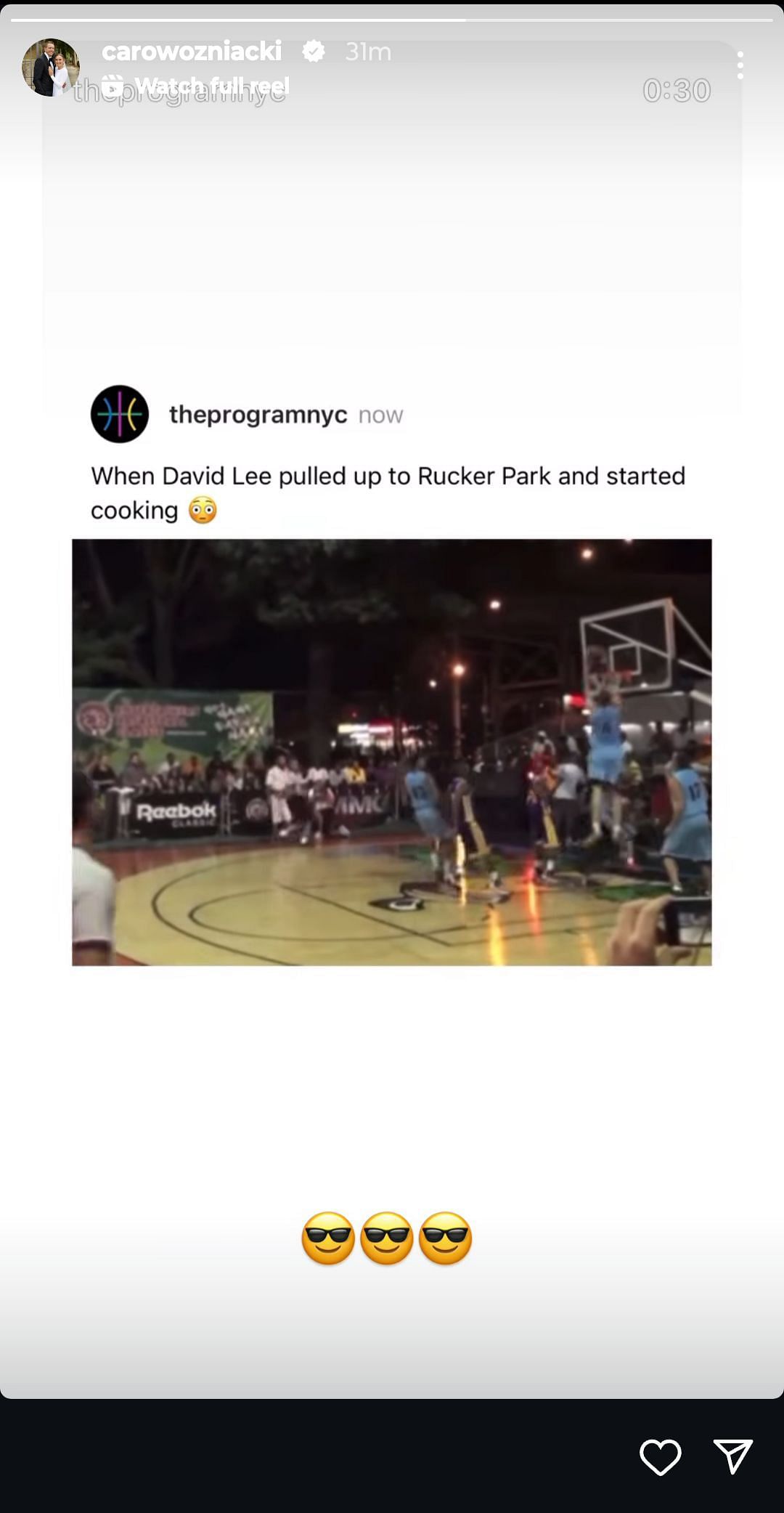 The Danish star took to Instagram as she reposted a throwback video of Lee playing a game at Rucker Park in New York. The video, originally shared by another account, was captioned: