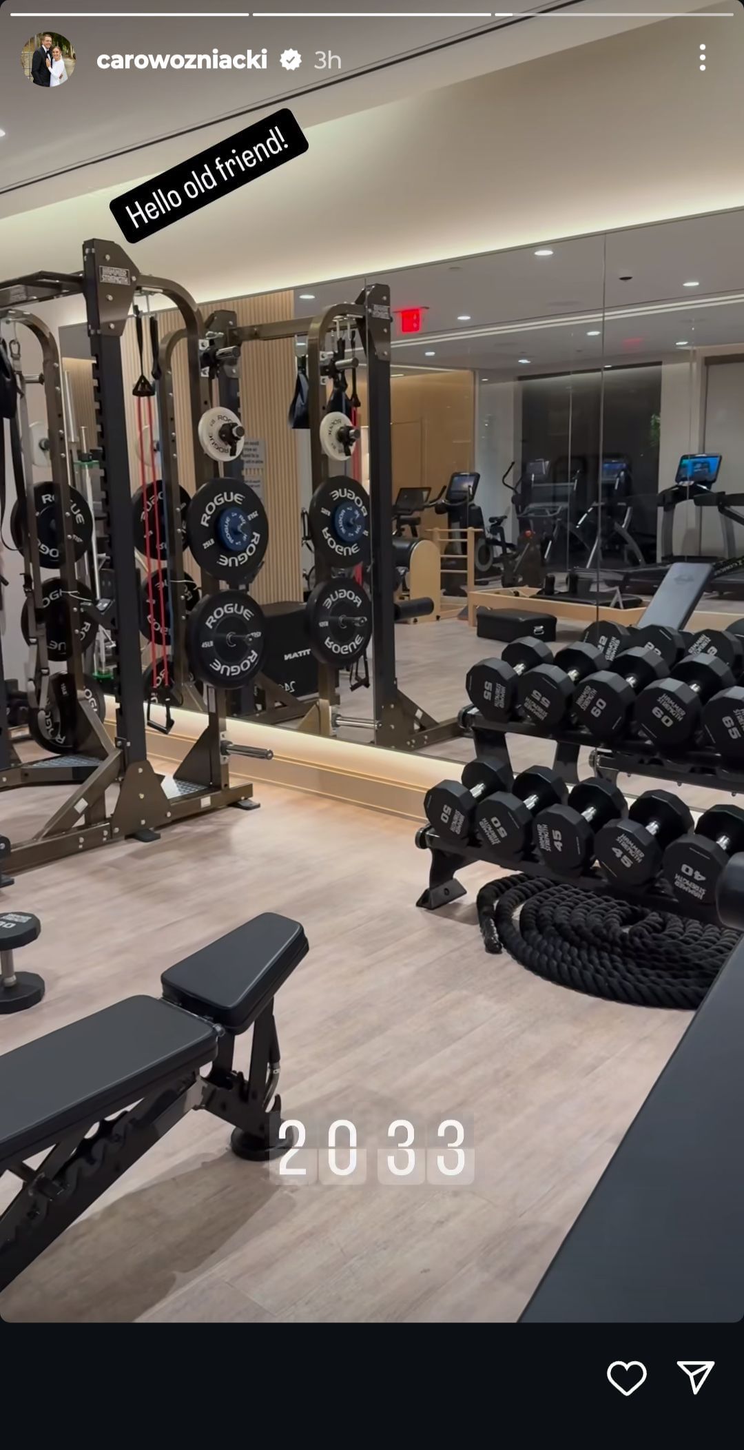 It was something of a surprise when she took to her Instagram stories this week to post images of her working out in the gym. Wozniacki captioned the post with three words:
