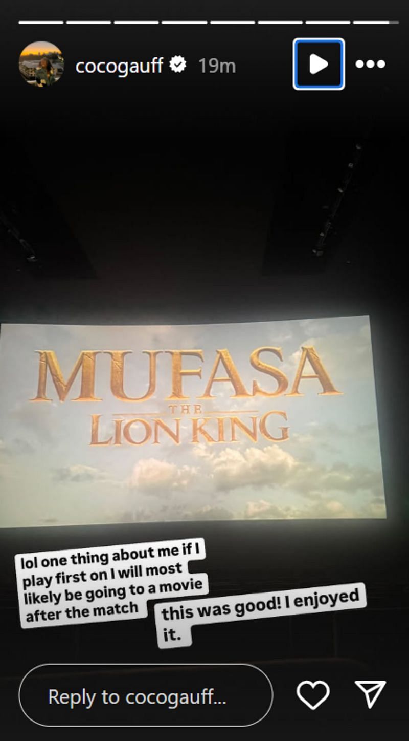 Seeded third at the Australian Open, Gauff posted a snap on her Instagram story about how she always chooses to watch a movie if she has an early match at tournaments, writing:
