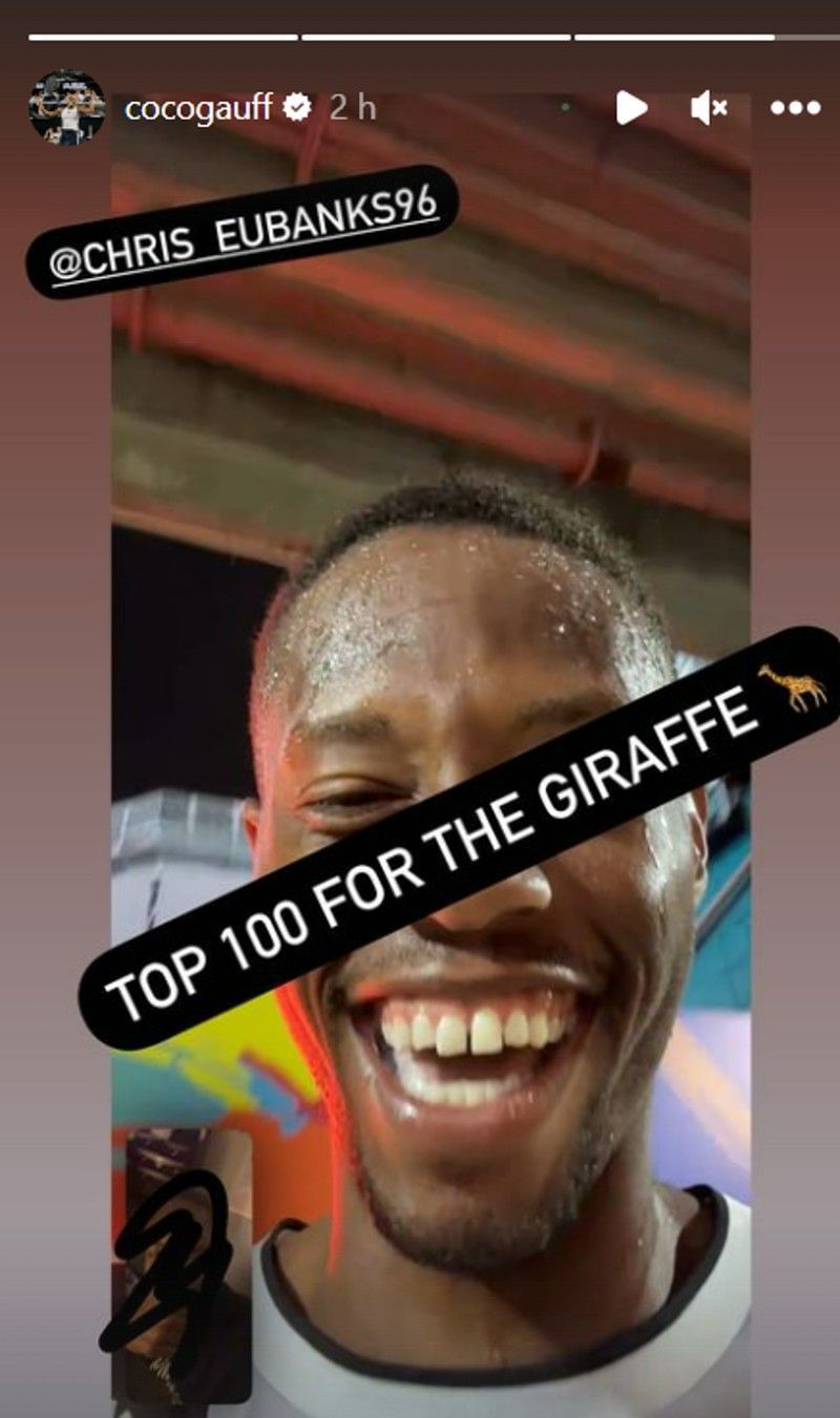 Coco Gauff, along with compatriots Ben Shelton and Sebastian Korda, congratulated Christopher Eubanks on entering the top 100 of the ATP rankings for the first time in his career.