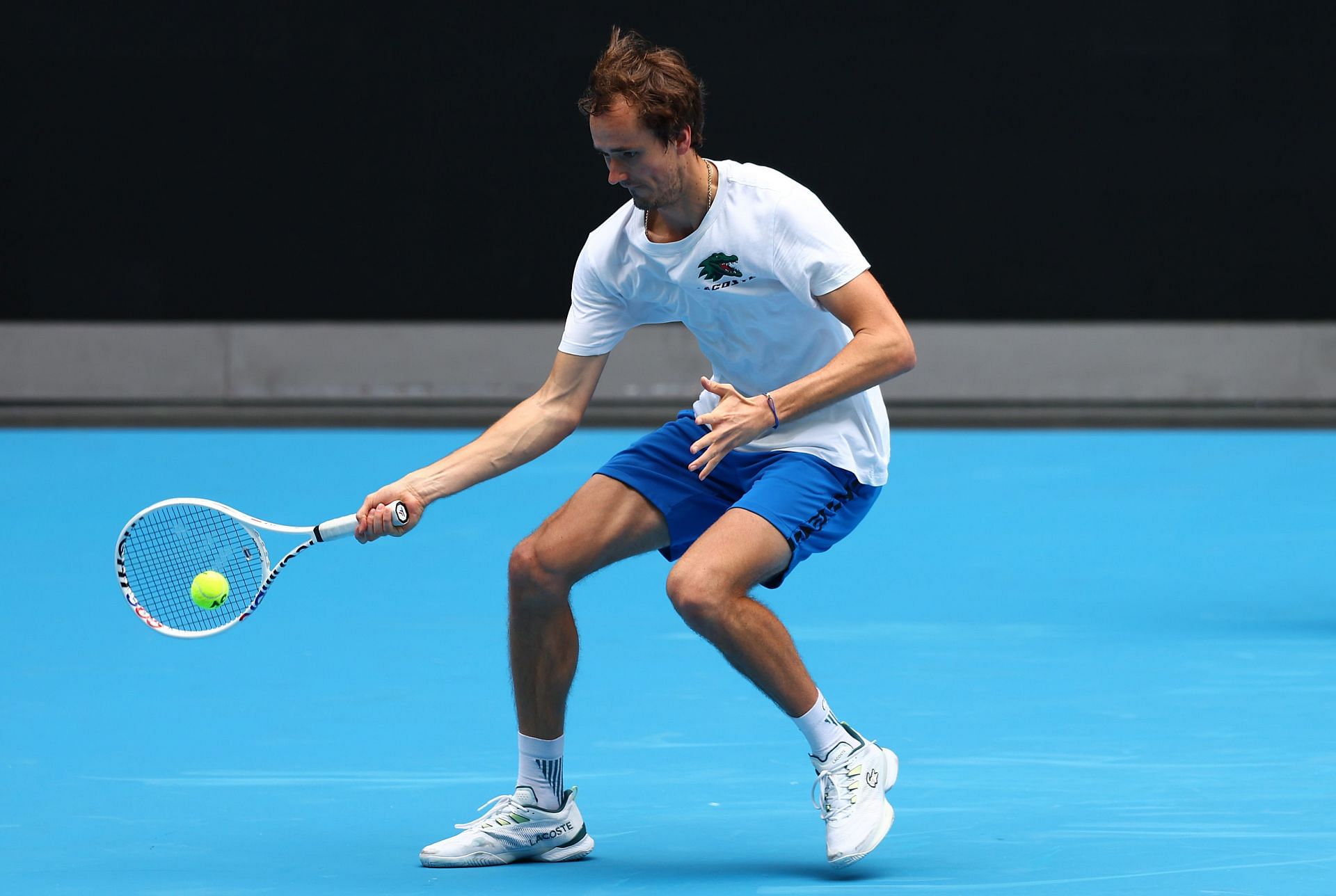 Daniil Medvedev debuted his new logo, designed in partnership with his apparel sponsor Lacoste, during his first-round match at the Australian Open, with the design featuring on his cap, polo shirt, and shoes. The Russian is also expected to have the logo stenciled on the strings of his racket.