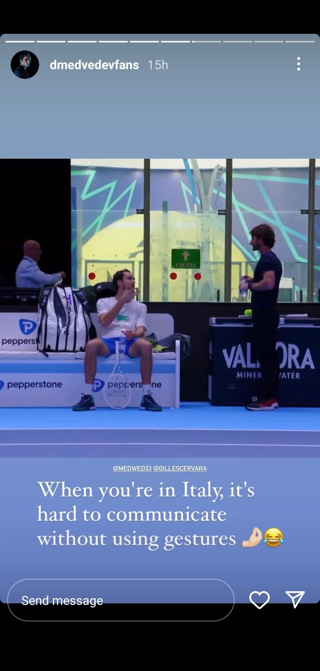 One of Medvedev's fan pages shared a video on Instagram showing the Russian gesturing extensively using his hands, reminiscent of the Italian style of communication.