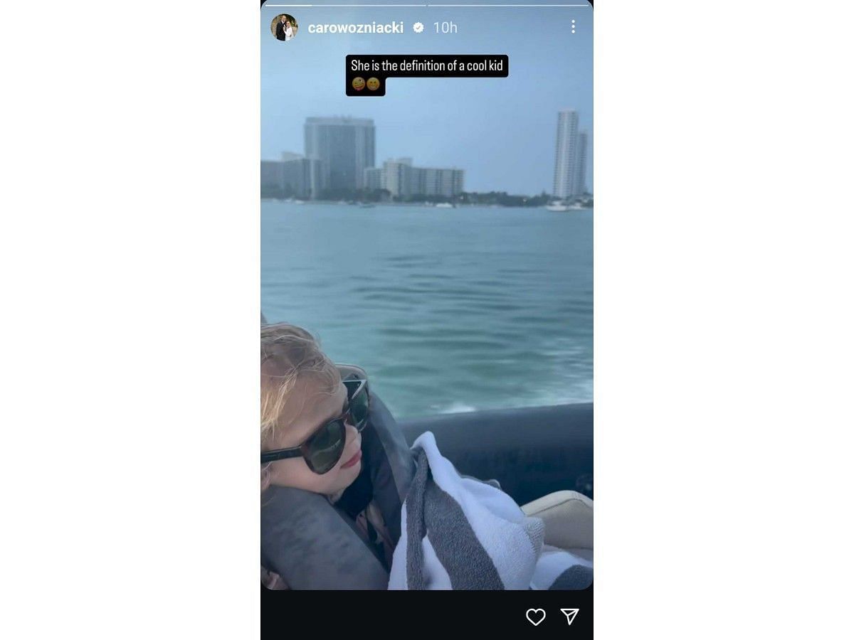 She shared some pictures on her Instagram story, and in the first one, she gushed over her daughter, calling her a cool kid. Olivia was seen wearing sunglasses and enjoying a boat ride, to which Wozniacki wrote: