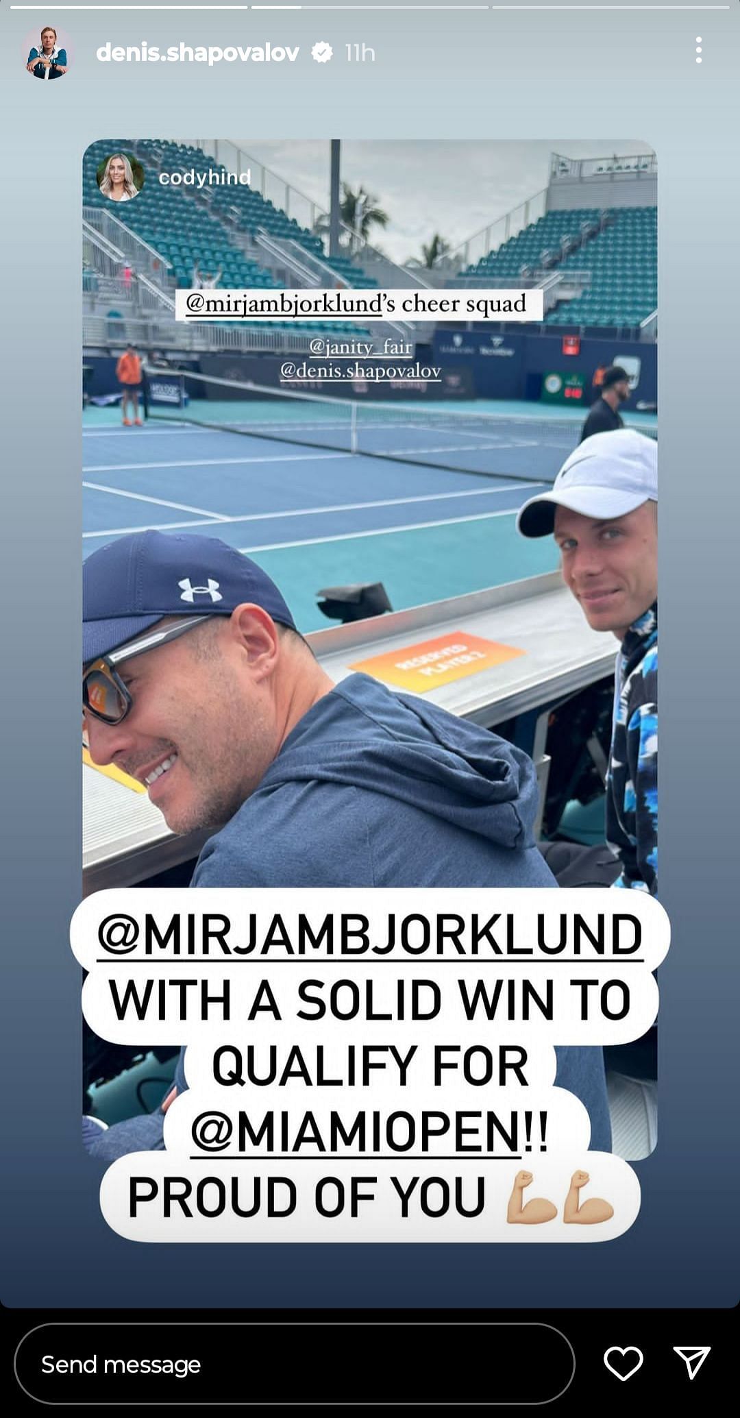 “Mirjam Bjorklund with a solid win to qualify for Miami Open. Proud of you,” he wrote.