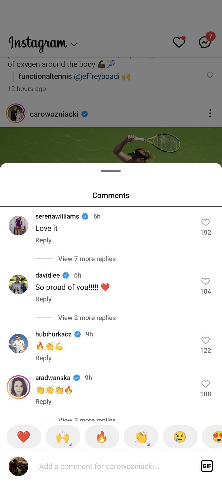 To celebrate the win, Wozniacki posted a picture on Instagram, on which Lee commented: