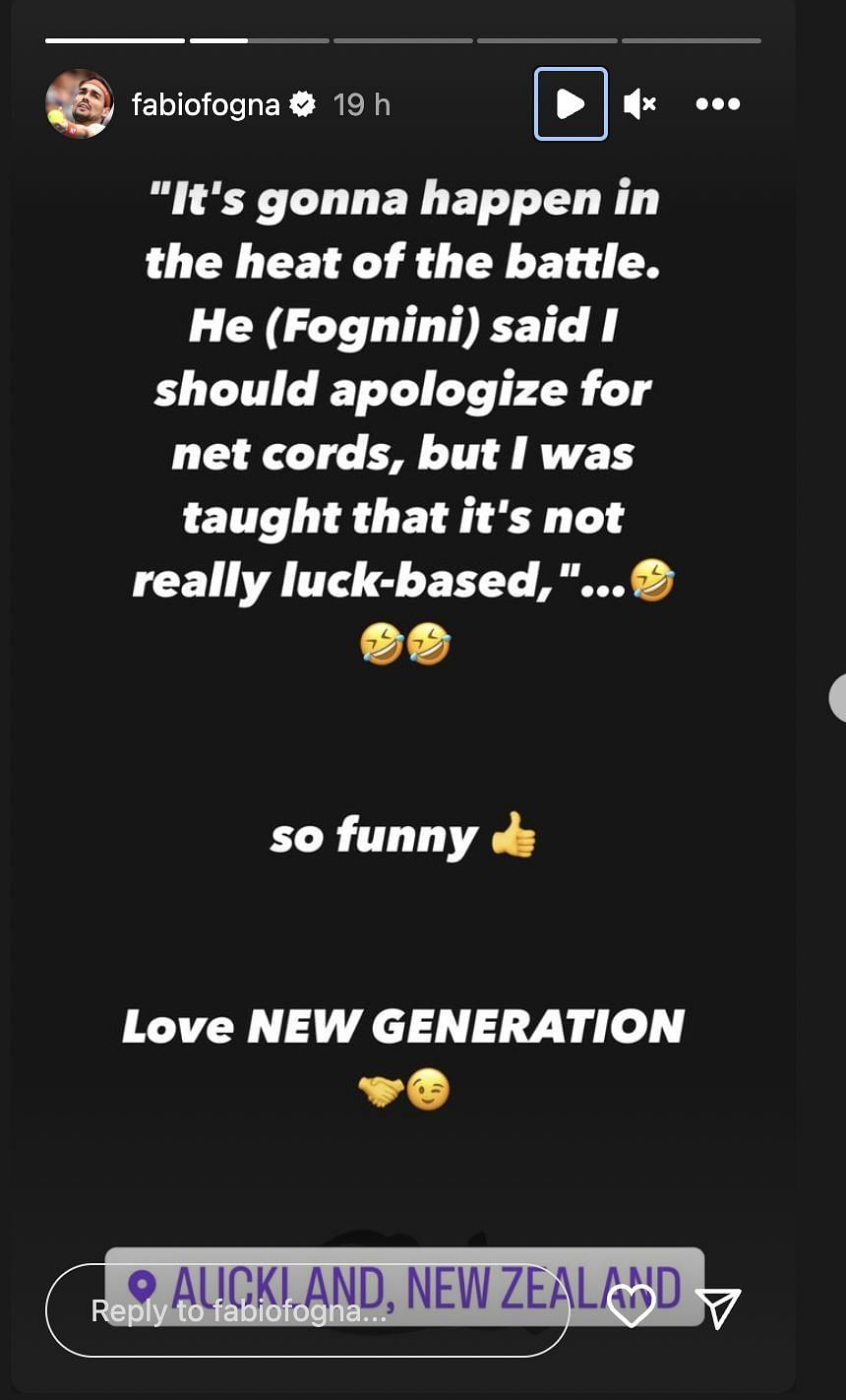 Fognini later turned to social media to have his say on the controversy. In his Instagram story, the 35-year-old quoted Brooksby and sarcastically called it "so funny."