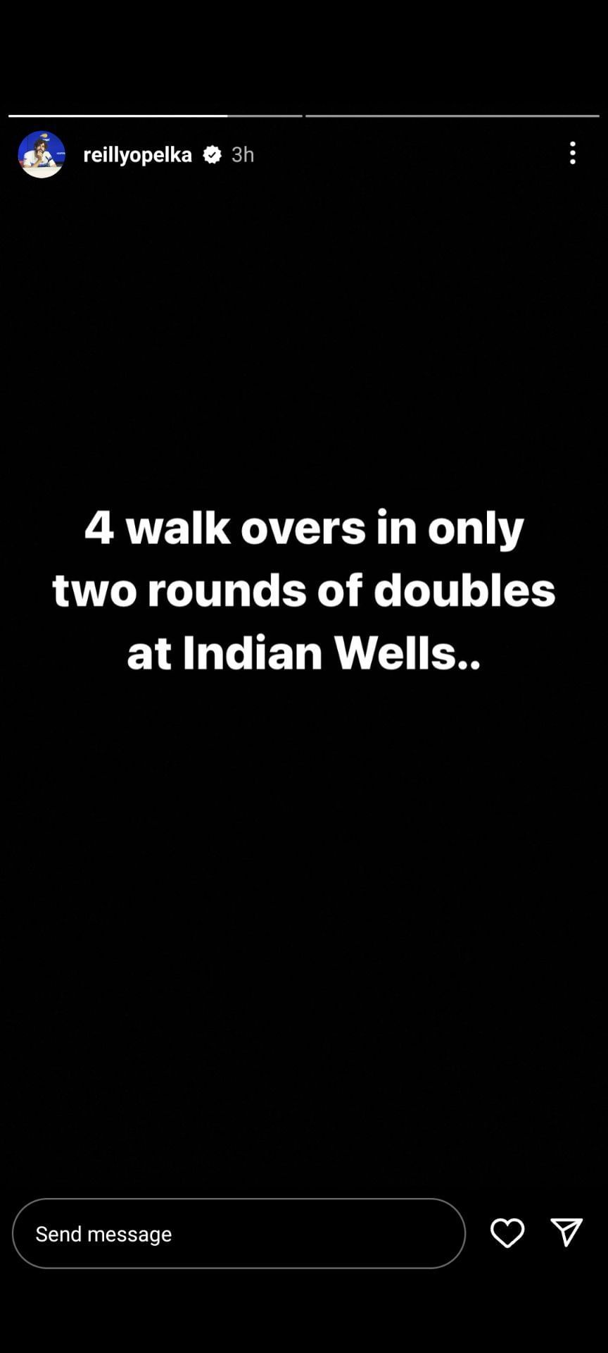 "4 walk overs in only two rounds of doubles at Indian Wells.." he wrote on his Instagram story.