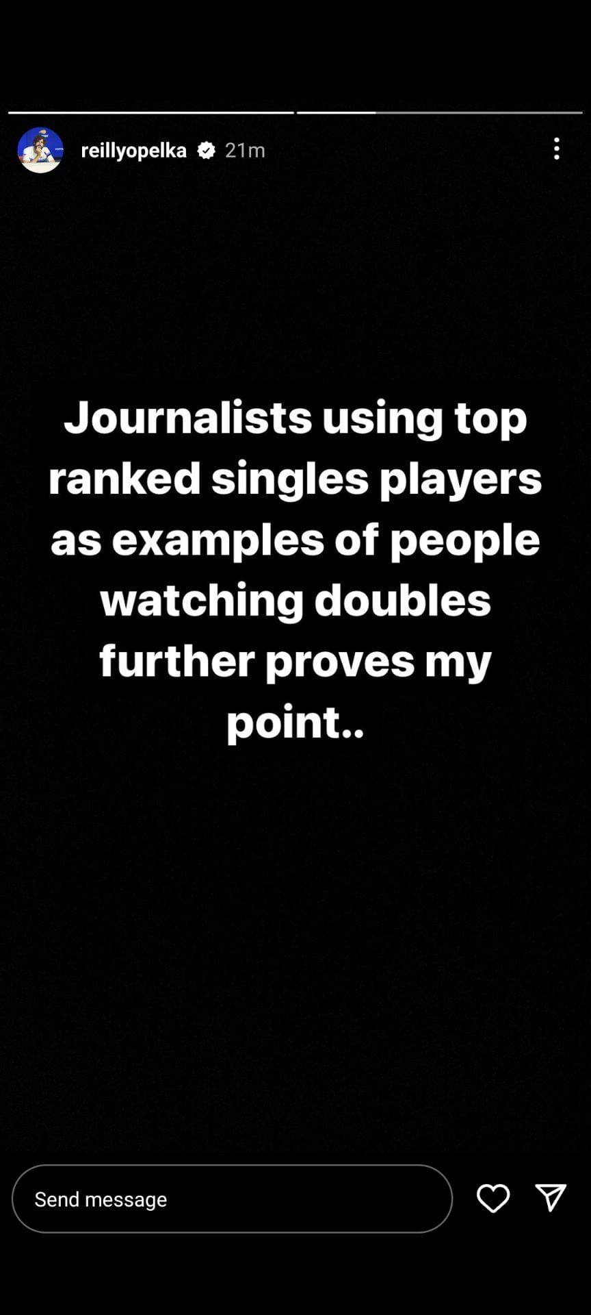 In that context, Opelka took to social media to point out the apparent dire state of doubles tennis.