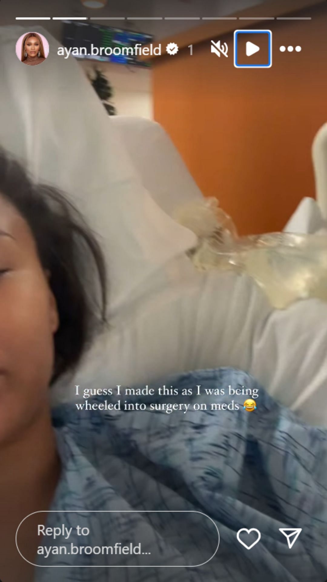 In her next stories post, Broomfield shared a video of herself as she was being taken in for surgery. She was heard saying: