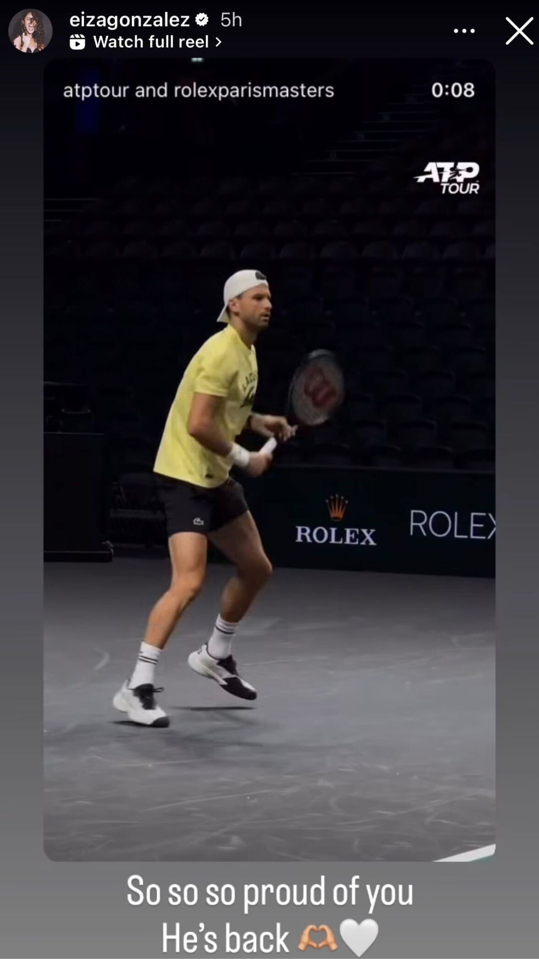 Now, more than three months after this heartbreaking exit, Grigor Dimitrov will return to the court at the Paris Masters. As he prepares for the ATP Masters 1000 event, his girlfriend Eiza Gonzalez recently shared a clip of the Bulgarian in a practice session in Paris on her Instagram story and wrote