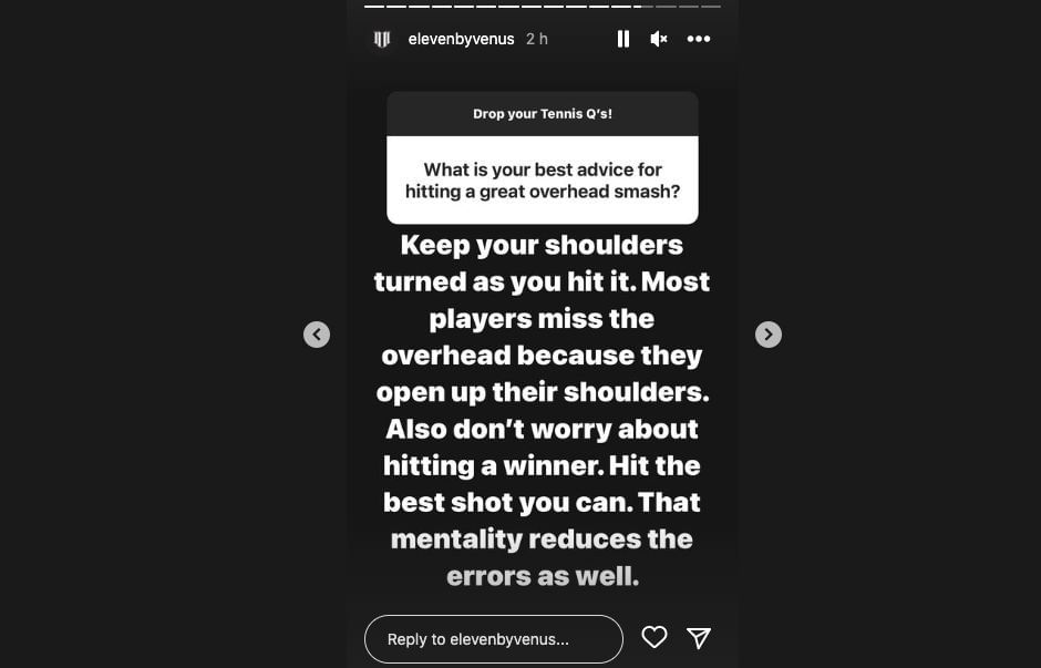 "Keep your shoulders turned, most of the players miss overhead because they open up their shoulders. And don't worry about hitting a winner. Hit the best shot you can. That mentality reduces the error."