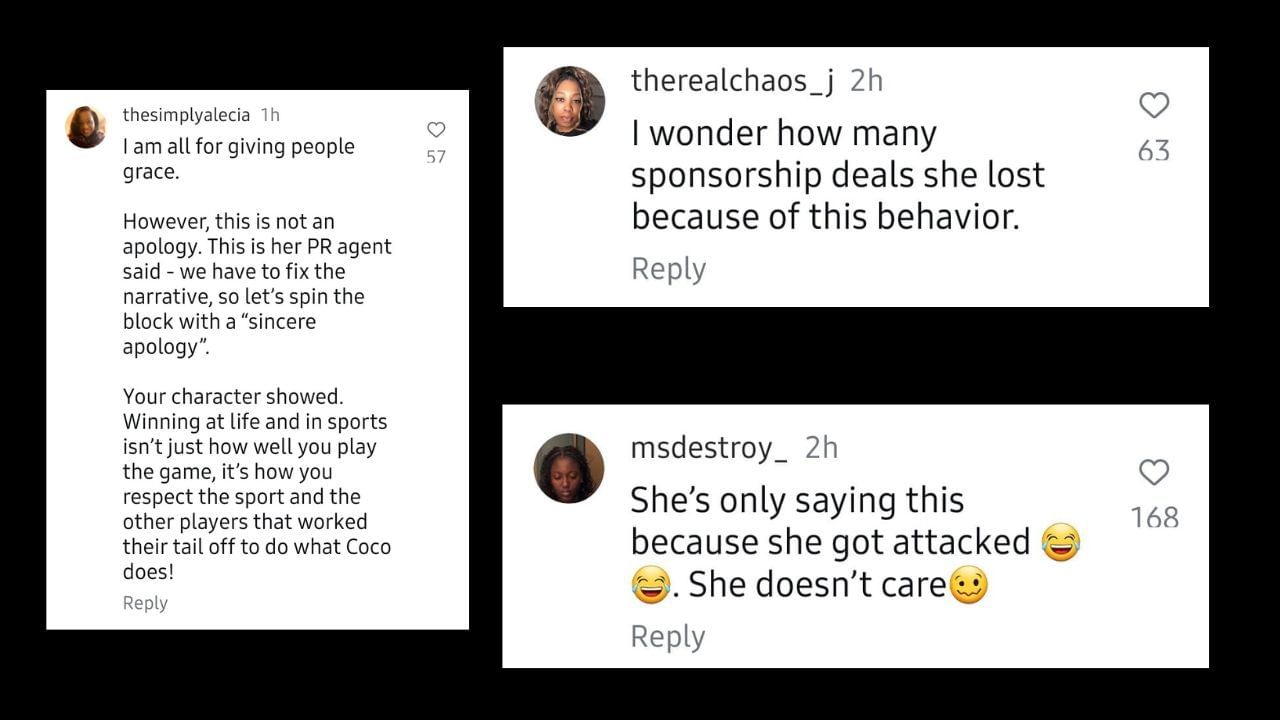 “I am all for giving people grace. However, this is not an apology. This is her PR agent said - we have to fix the narrative, so let's spin the block with a ‘sincere apology.’ Your character showed. Winning at life and in sports isn't just how well you play the game, it's how you respect the sport and the other players that worked their tail off to do what Coco does!” another wrote.