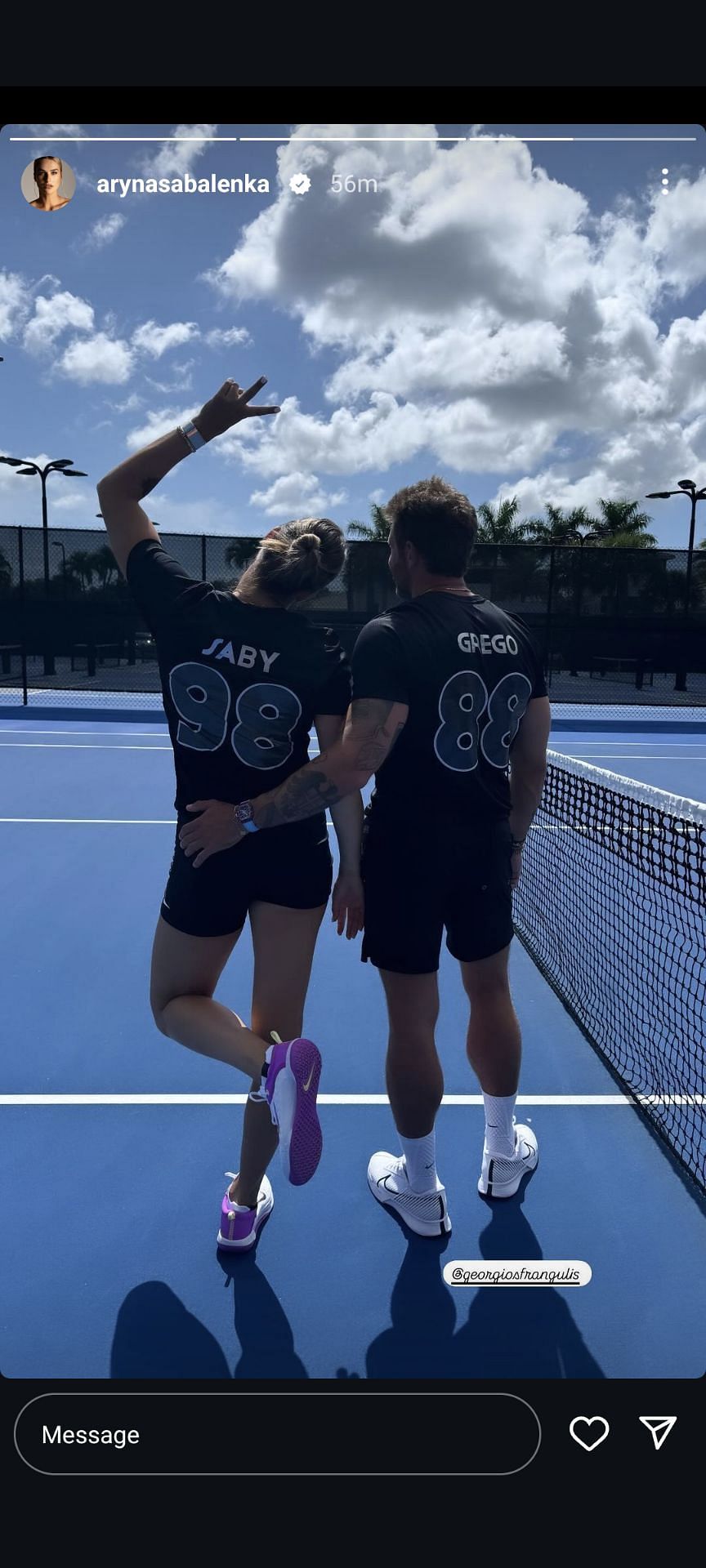 Aryna Sabalenka recently shared a glimpse of her time with her boyfriend, Georgios Frangulis, as the couple posed for a unique photograph on a tennis court. Georgios Frangulis is a race car driver and the founder and CEO of superfood brand Oakberry Acai Bowls.